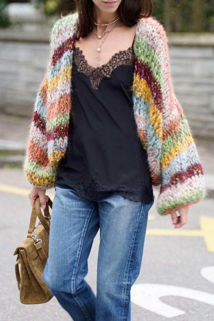 Hier die easy to wear Kollektion von Mes Demoiselles in 100% Seide. Ein Eye Catcher in weicher Seide und Spitze in schwarz. Wir lieben dieses Top, es ist etwas länger und auf der Seite hat es zwei kleine Schlitze. Super schön über Jeans, unter einem Blazer, unter einem Pullover.