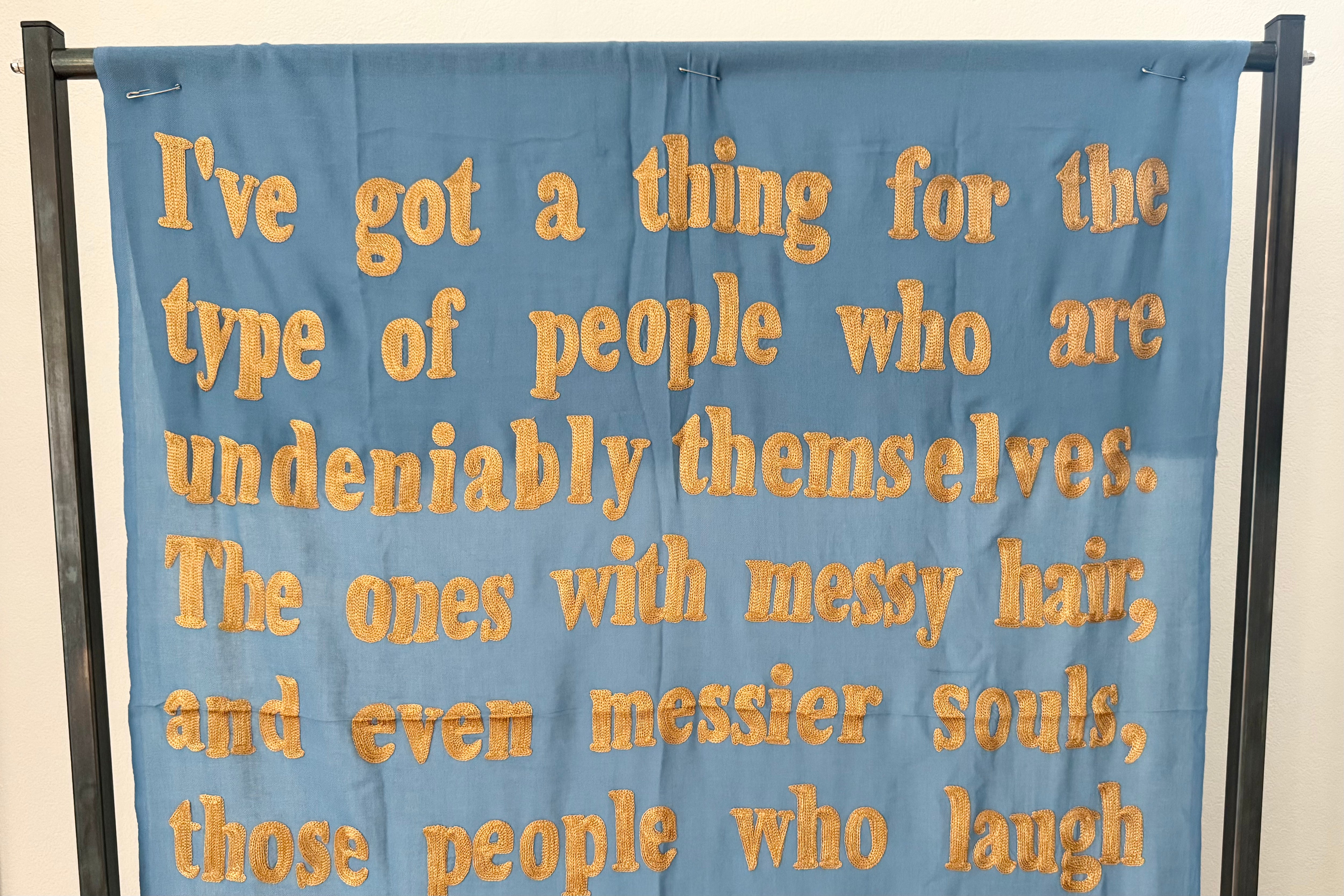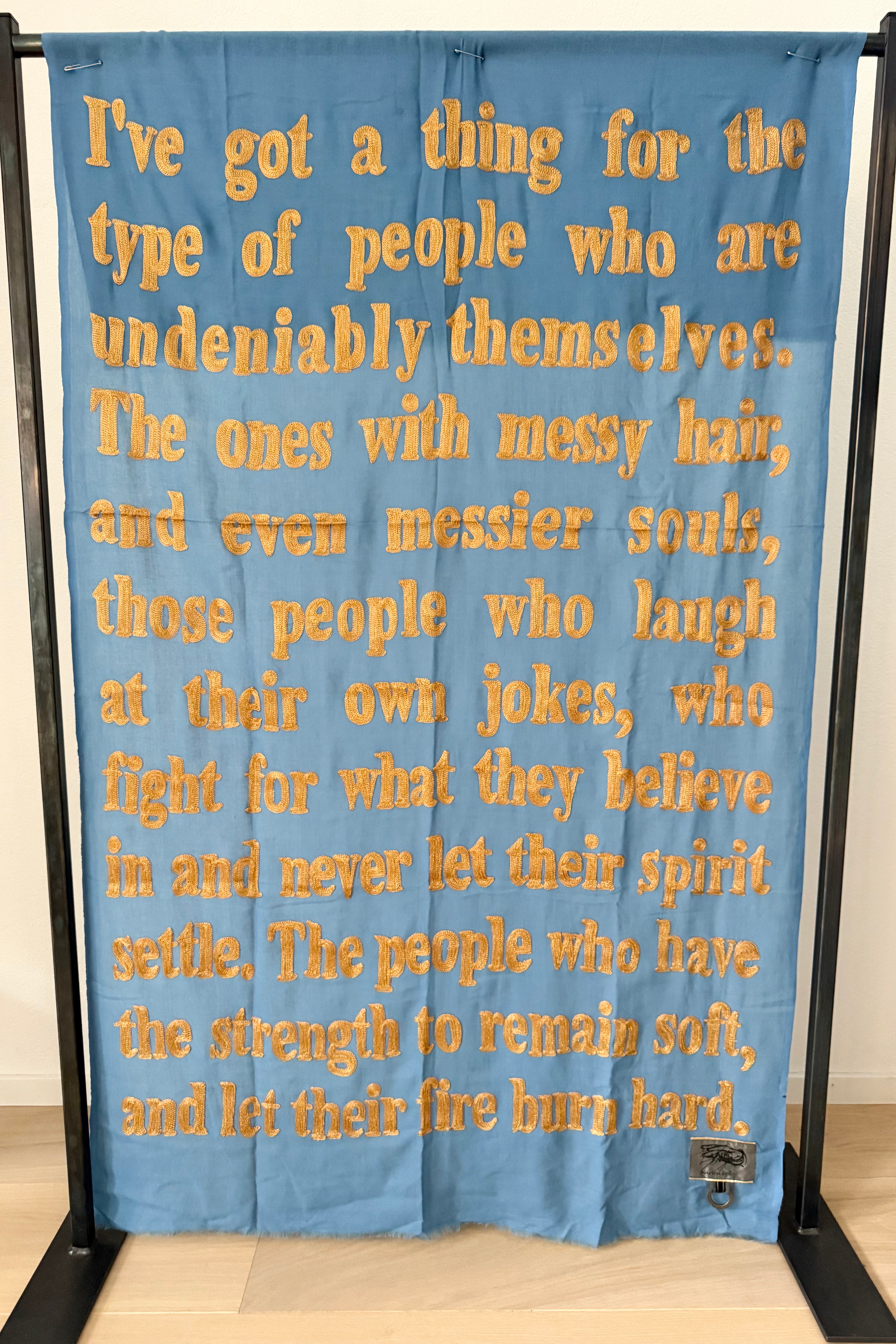 Ein super schöner 100% Wool Pashmina Classic Scarf. Warm, super weich und mit einem schönen Spruch in flieder bestickt. Ein richtiges Statement Piece über deine Kleider im Frühling/Sommer oder im Herbst/Winter als Schal.